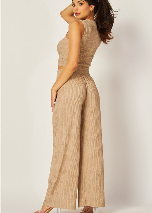 2 PC Set Khaki | Tank Top | Elastic waistband pull on wide leg pants