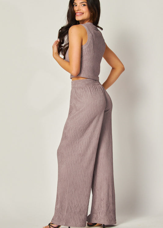 2 PC Set Color Violeta| Tank Top | Elastic waistband pull on wide leg pants