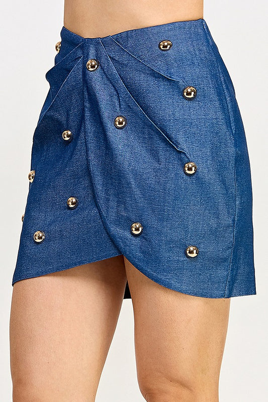 ASYMMETRICAL HEM SKORT W/ HOT FIX FABRIC | BLACK