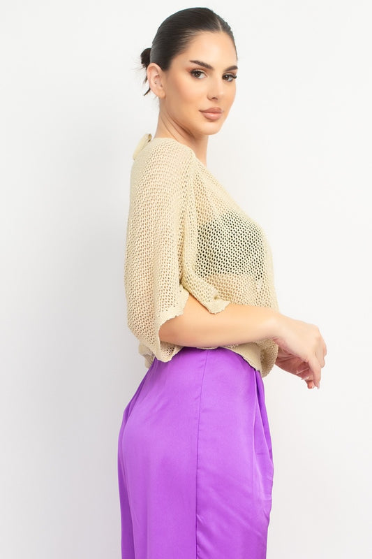 PEARL TRIM HALTER SWEATER