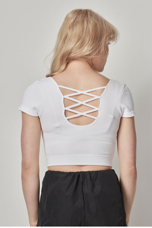 Stretchy Ribbed Top | Seamless Top | Lattice Back Crop Top