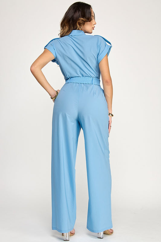 DOLMAN SLEEVE W/ ROLL UP TAB TOP JUMPSUIT