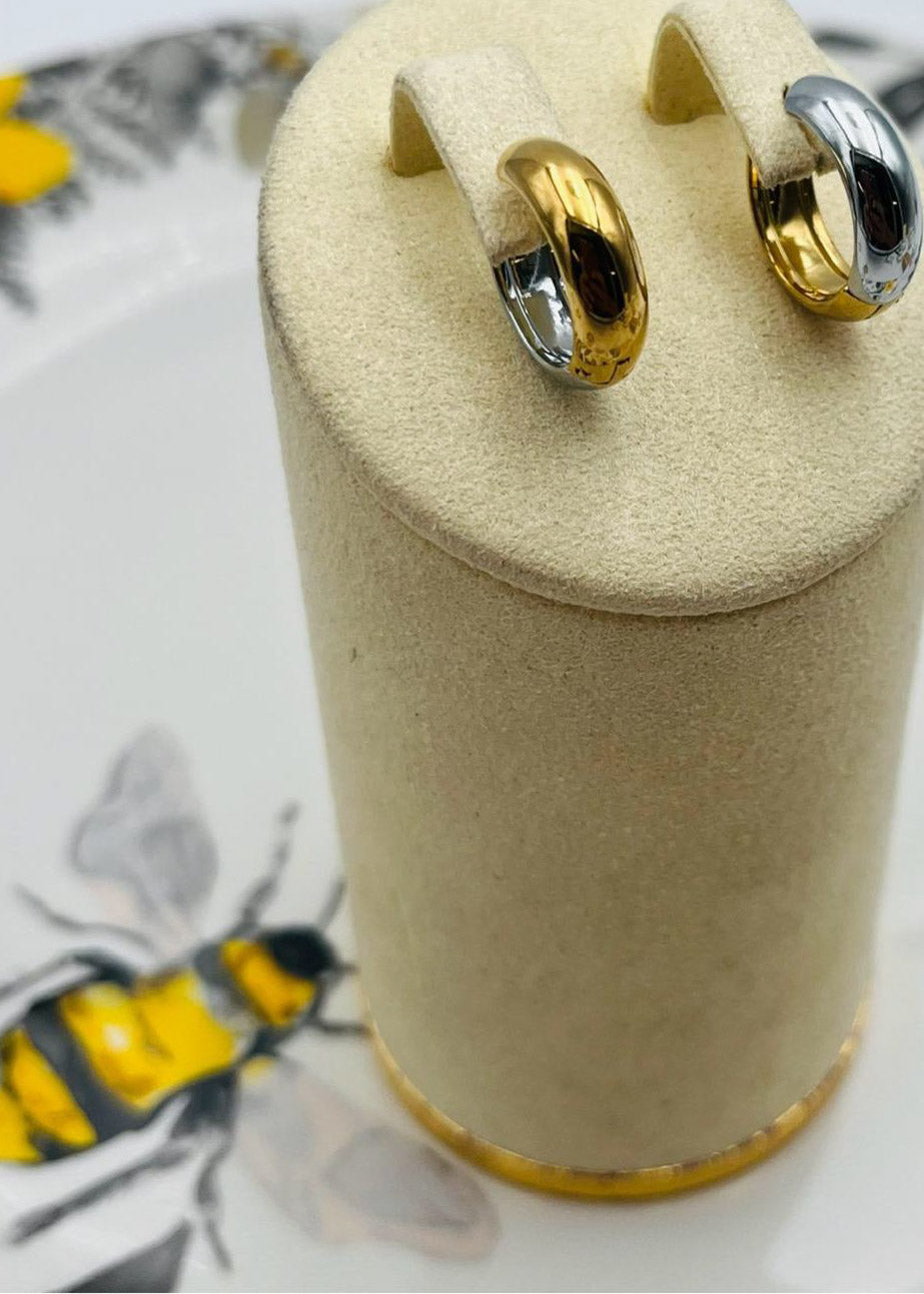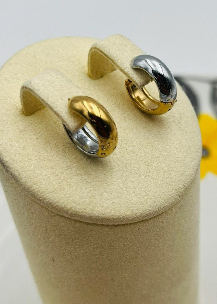 Expresa tu estilo con estos elegantes aretes de dos tonos. Los aretes son una excelente opción para dar un toque de glamour a cualquier atuendo. Hechos de materiales de calidad, son duraderos y cómodos de usar. ¡Destaca con estos hermosos aretes en cualquier ocasión!