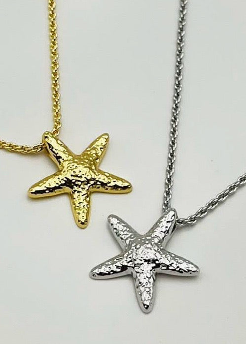 Collar de acero en tendencia con diseño de estrella de mar. Añade un toque único y elegante a tu look. Hecho con materiales de alta calidad, resistente y duradero. Perfecto para cualquier ocasión. ¡Hazte notar con este accesorio de moda!