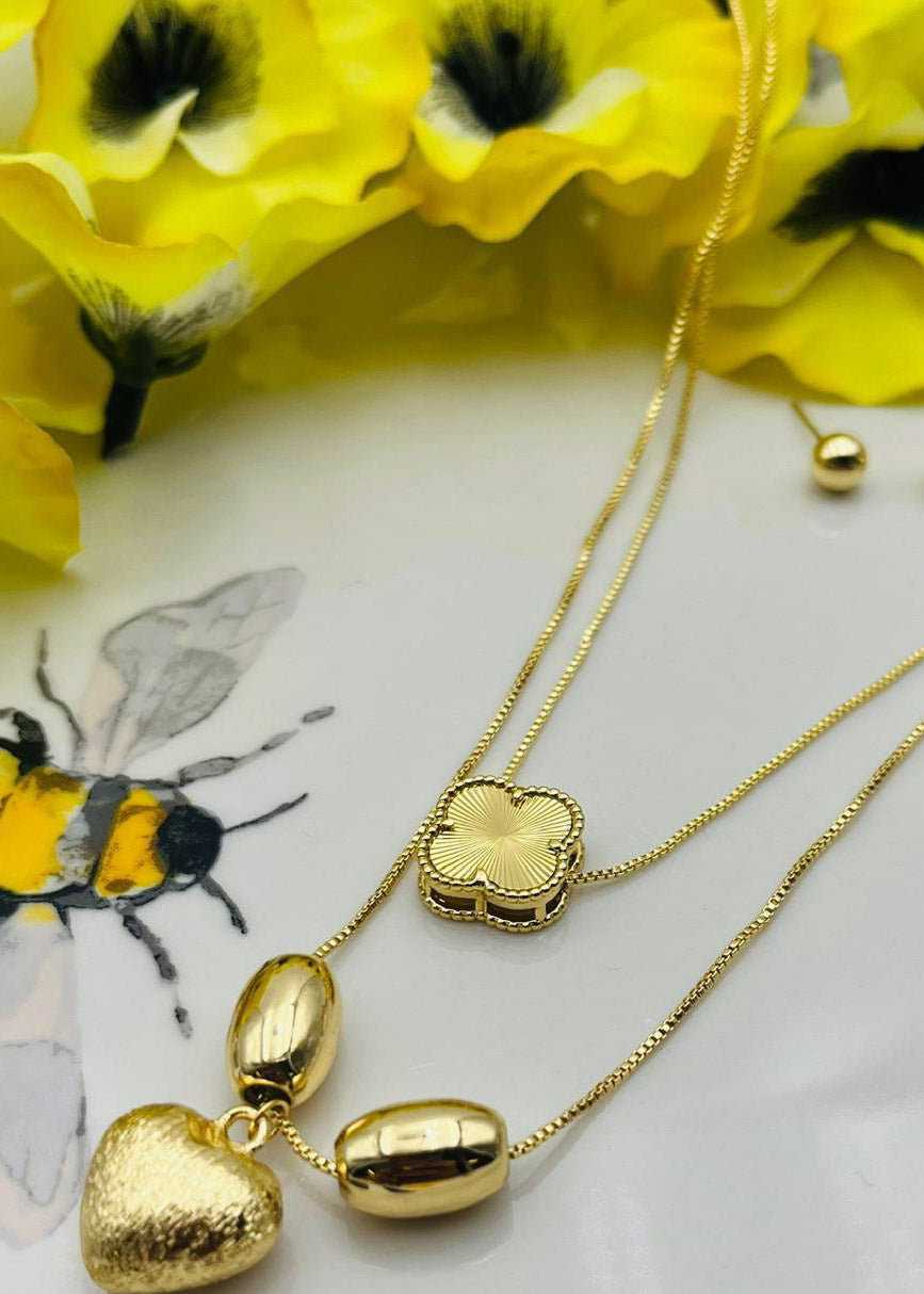 Collar de Trébol en dorado doble cadena