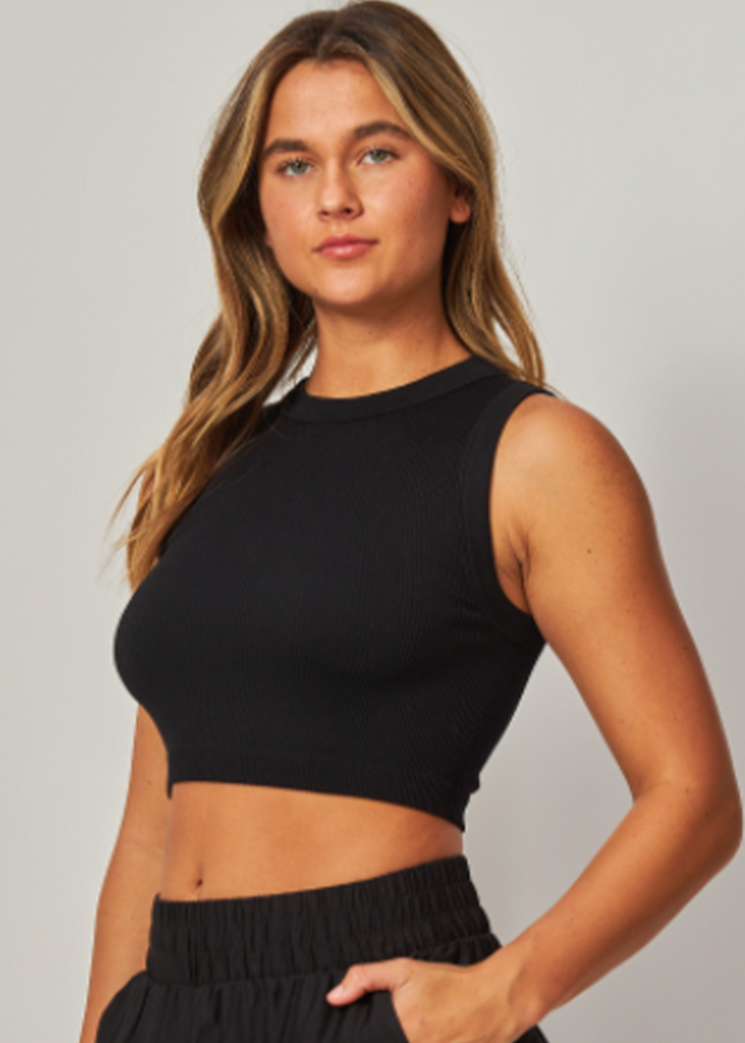 Disfruta de comodidad y estilo con nuestro top crop de cuello alto. Fabricado con tejido elástico y sin costuras para brindarte una sensación suave en la piel. Diseñado con detalles acanalados que te brindarán un ajuste perfecto. Ideal para un look moderno y elegante.