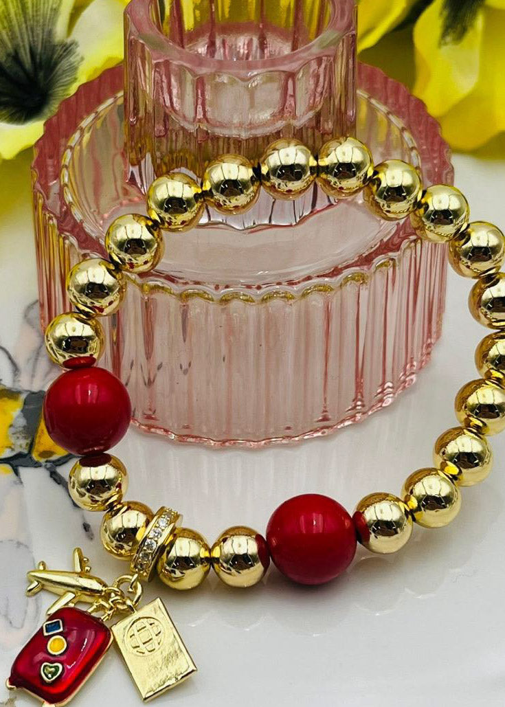 Explora el mundo con estilo con nuestra pulsera con pendant de avión y maleta. Hecho de materiales de alta calidad, este accesorio único es perfecto para los amantes de los viajes. Llévalo contigo en tus aventuras y luce tu pasión por viajar. ¡Haz una declaración con esta pulsera!