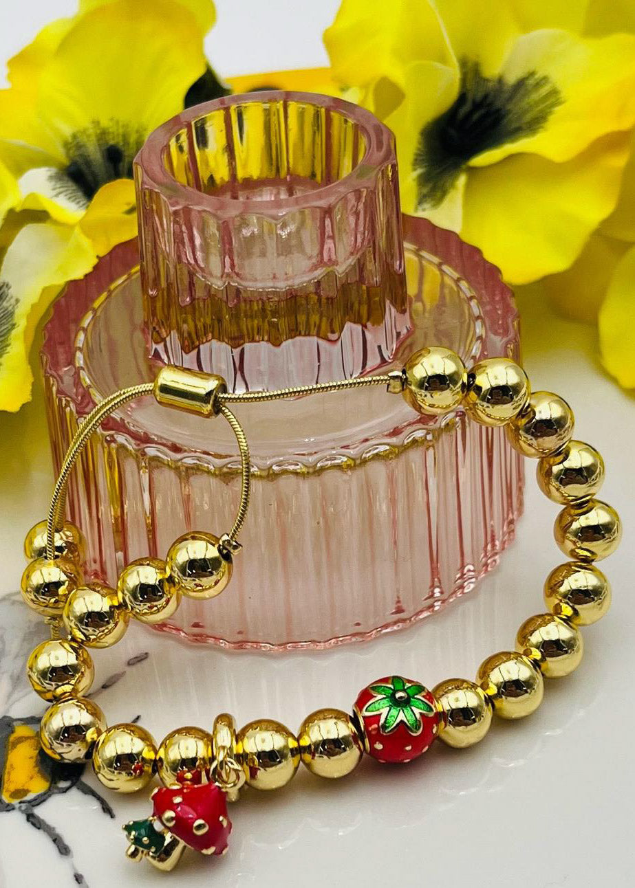 Pulsera de charm de Strawberry en color dorada y cierre deslizante