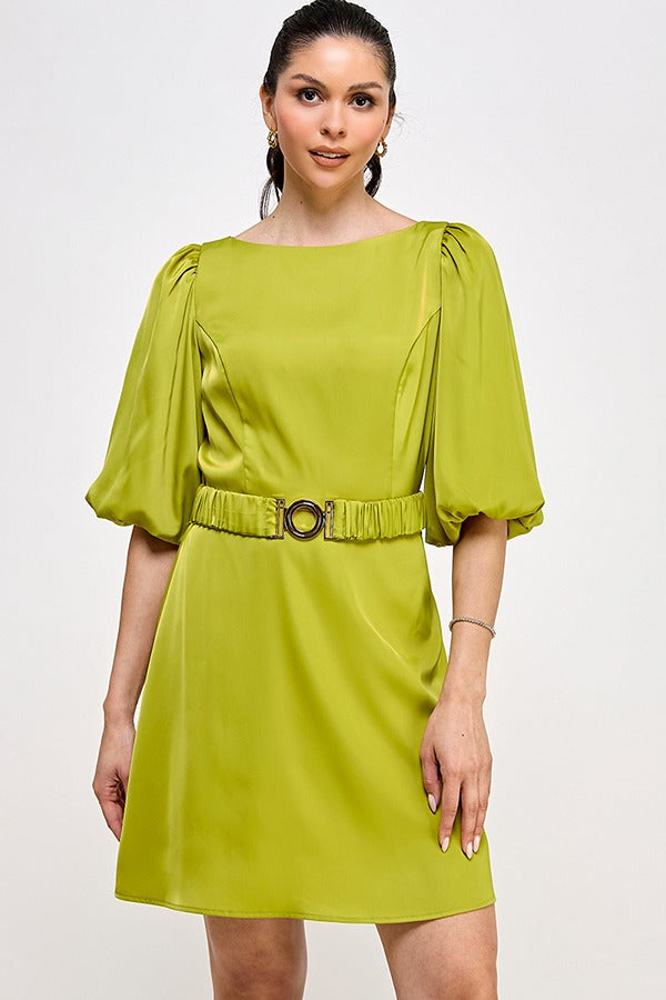 ELASTIC WAIST BELT 3/4" BUBBLE SLV MINI DRES