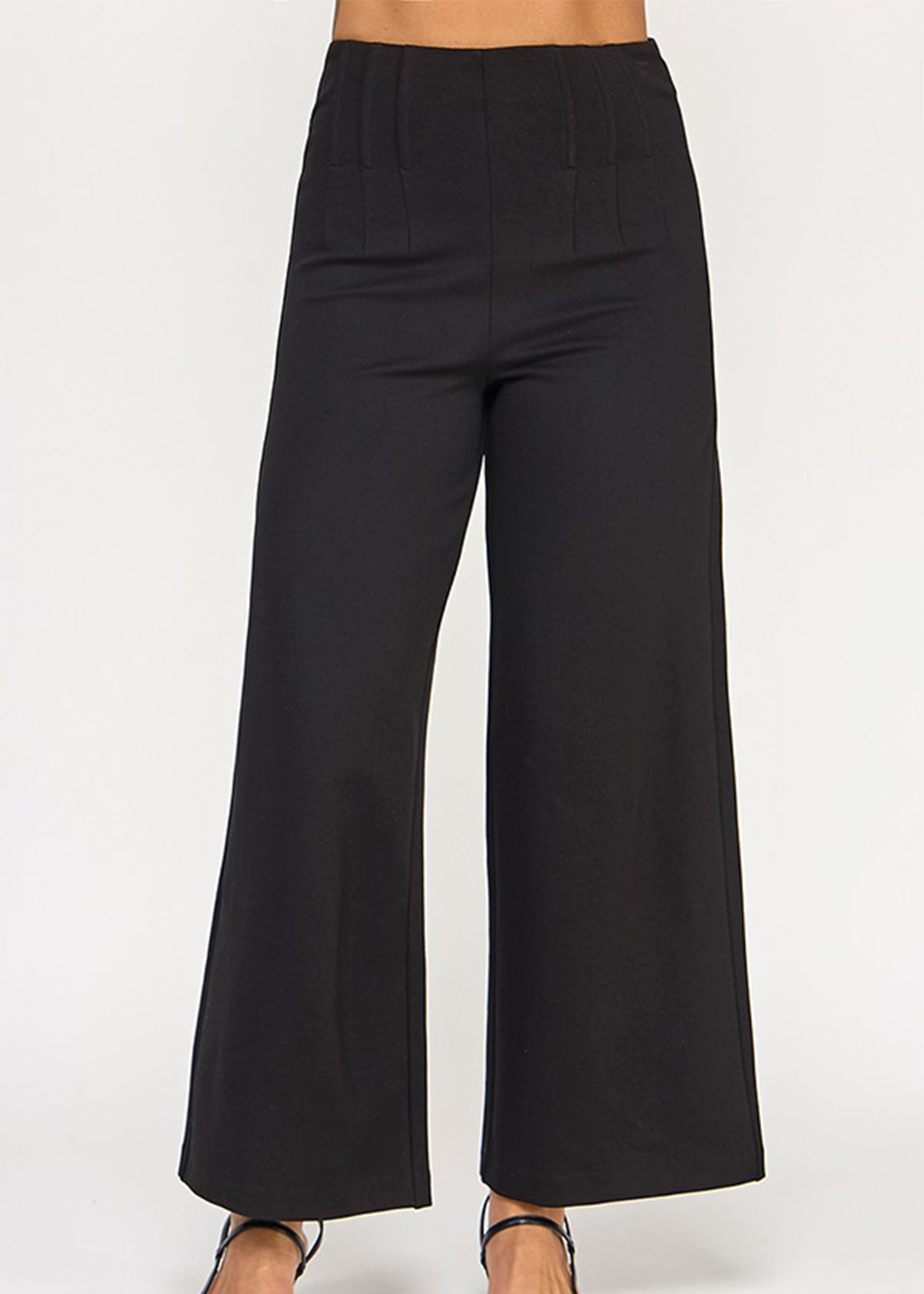 HIGH WAIST WIDE LEG PONTE PANTS W/ PLASTIC BONING