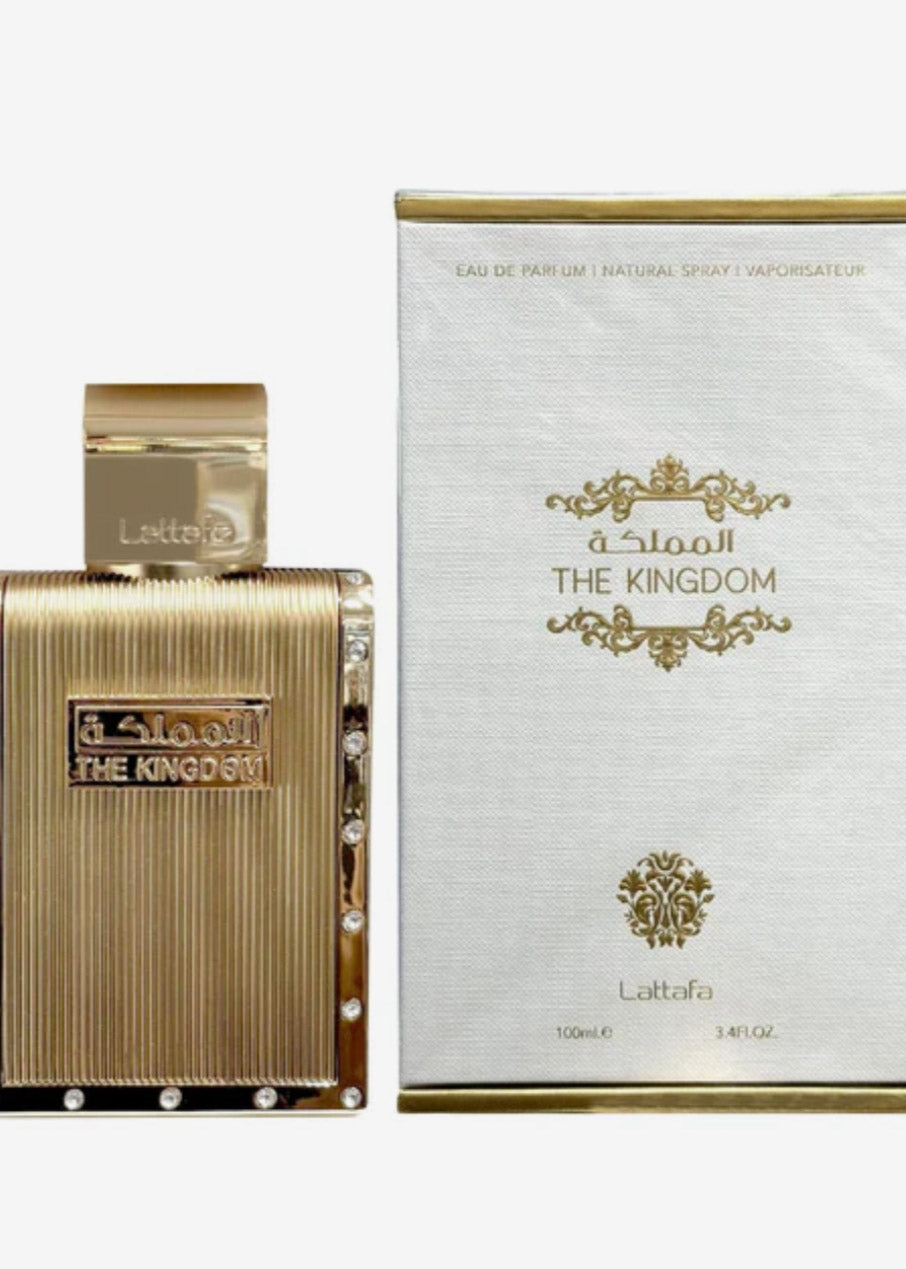 Experience the regal scent of LATTAFA THE KINGDOM Men Eau de Parfum. This 3.4-ounce fragrance combines the refreshing notes of sage, lavender, and mint with a warm heart of tobacco, vanilla, and orange flower. The base is a rich blend of benzoin, tonka bean, and labdanum, creating a lasting, sophisticated aroma. Perfect for any occasion, LATTAFA THE KINGDOM embodies elegance and confidence in a beautifully designed bottle. Rule your day with this timeless and captivating scent.