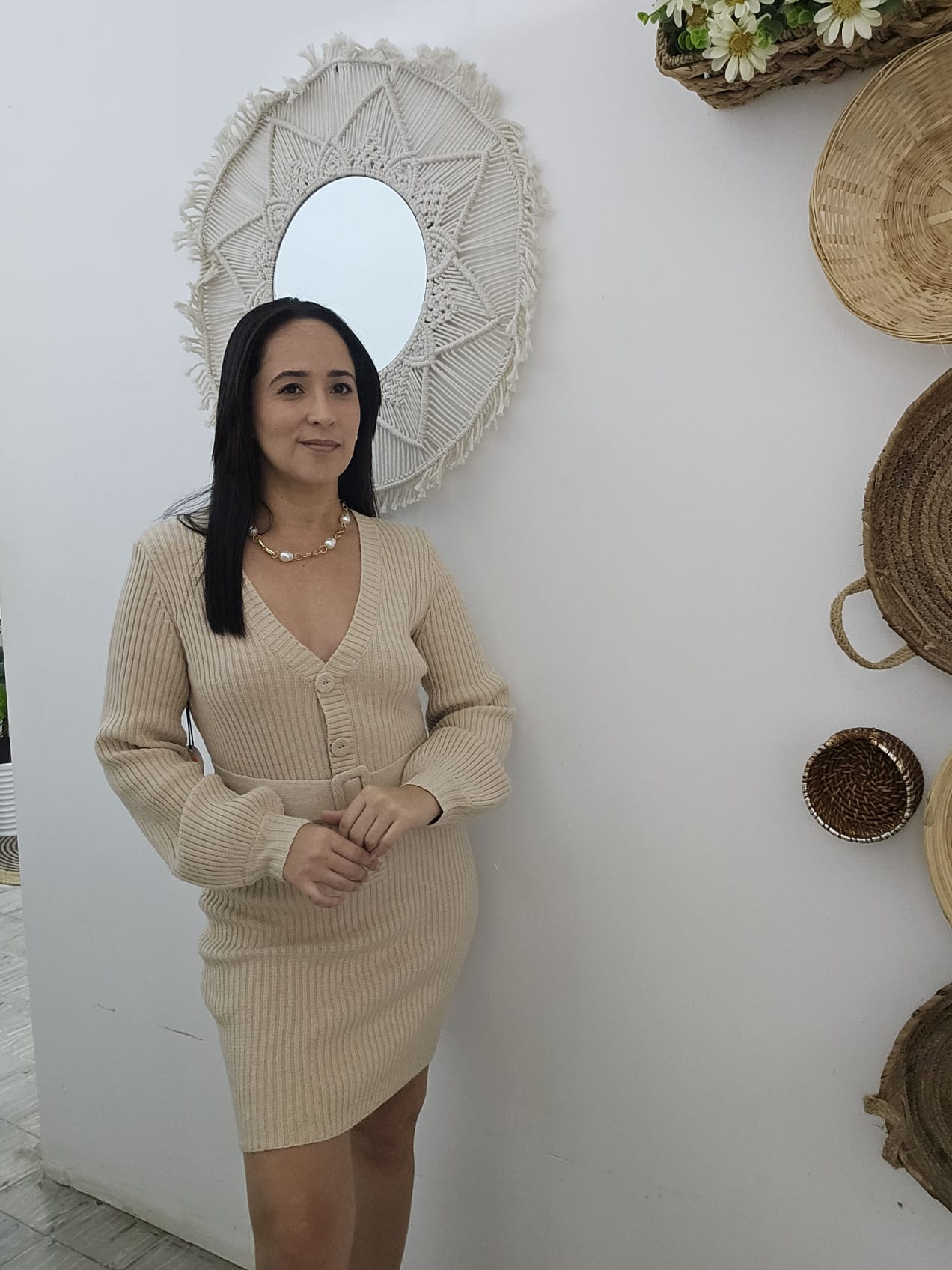 Este vestido es perfecto para cualquier ocasión. Con un corte elegante y ceñido, presenta botones en la parte delantera y un cinturón para un ajuste personalizado. Confeccionado con una tela de alta calidad, este vestido es cómodo y duradero. Llévalo con tacones para una apariencia sofisticada o con sandalias para un look más casual.