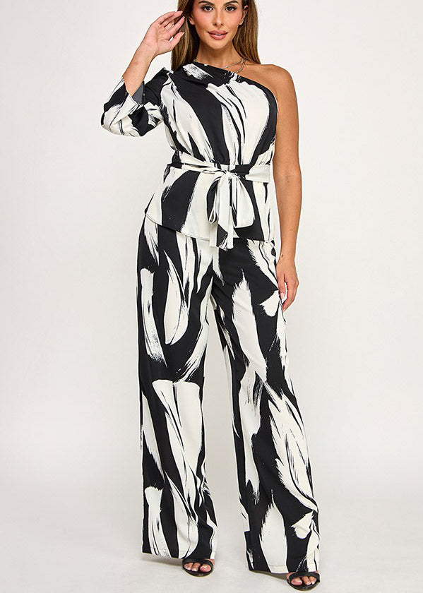 ONE SHOULDER 3/4 SLV WAIST TIE TUNIC TOP W/ PANTS SET