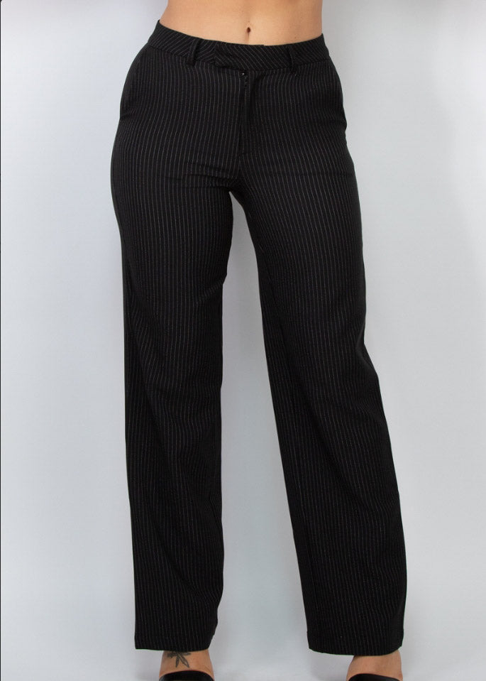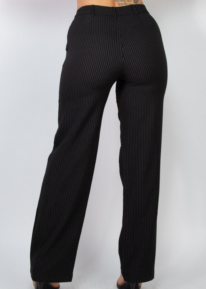 Pin STRIPE Mid Rise Pants ( Woven) | Black