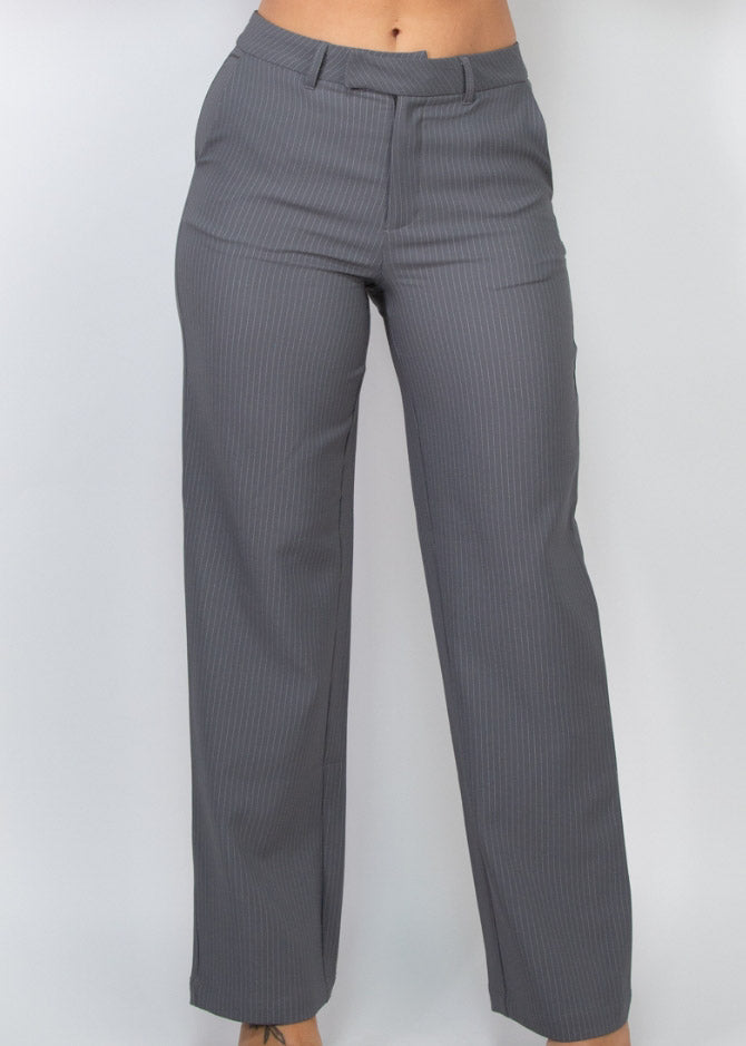 Pin STRIPE Mid Rise Pants ( Woven) | GREY