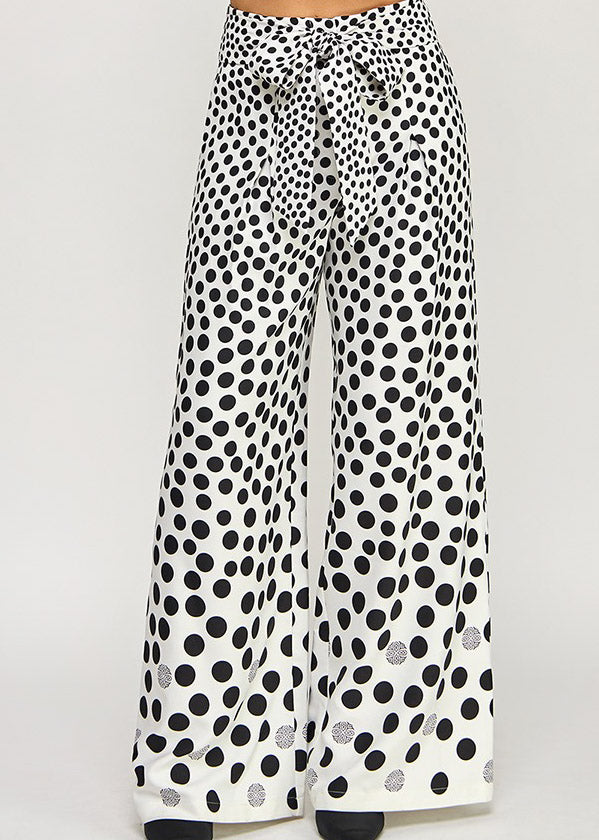 PRINTED WIDE LEG PANTS W/ WAIST TIE