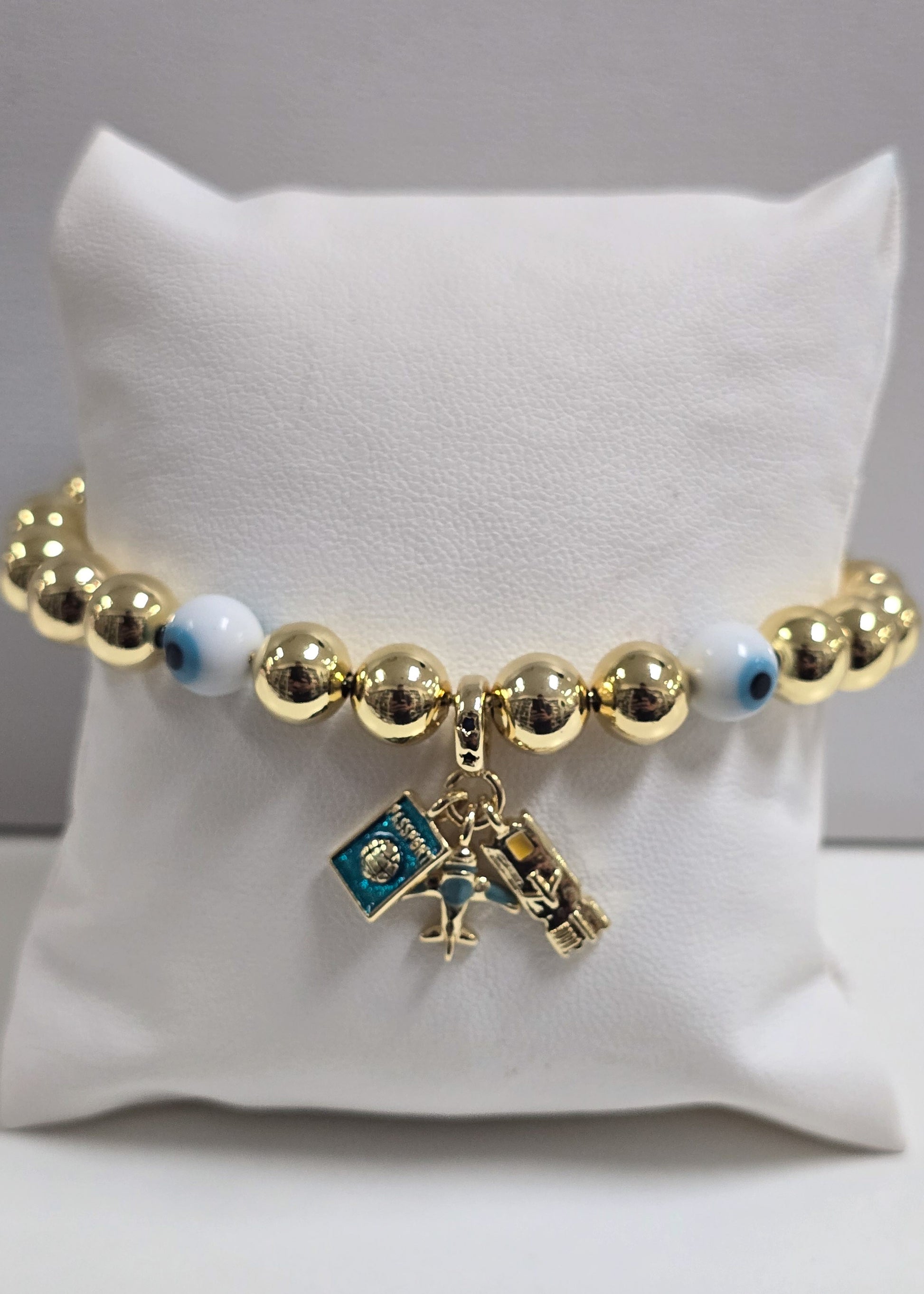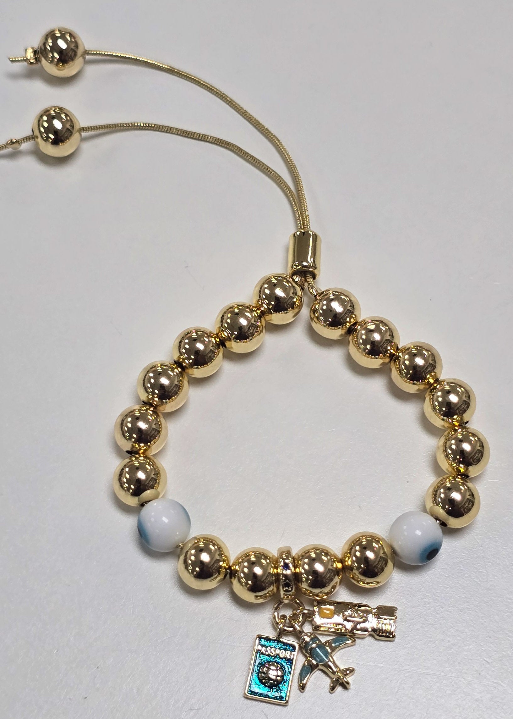Esta pulsera única cuenta con un pendant de avión y un charm de pasaporte para añadir un toque de estilo a tu look. Cuenta con un cierre deslizante que se ajusta a varias medidas de muñeca, lo que la hace perfecta para cualquier persona. Haz una declaración de moda y aventura con esta pulsera.