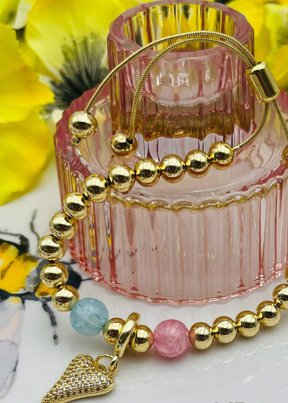 Pulsera charm de corazón y rhinestones y piedras de cristal de colores
