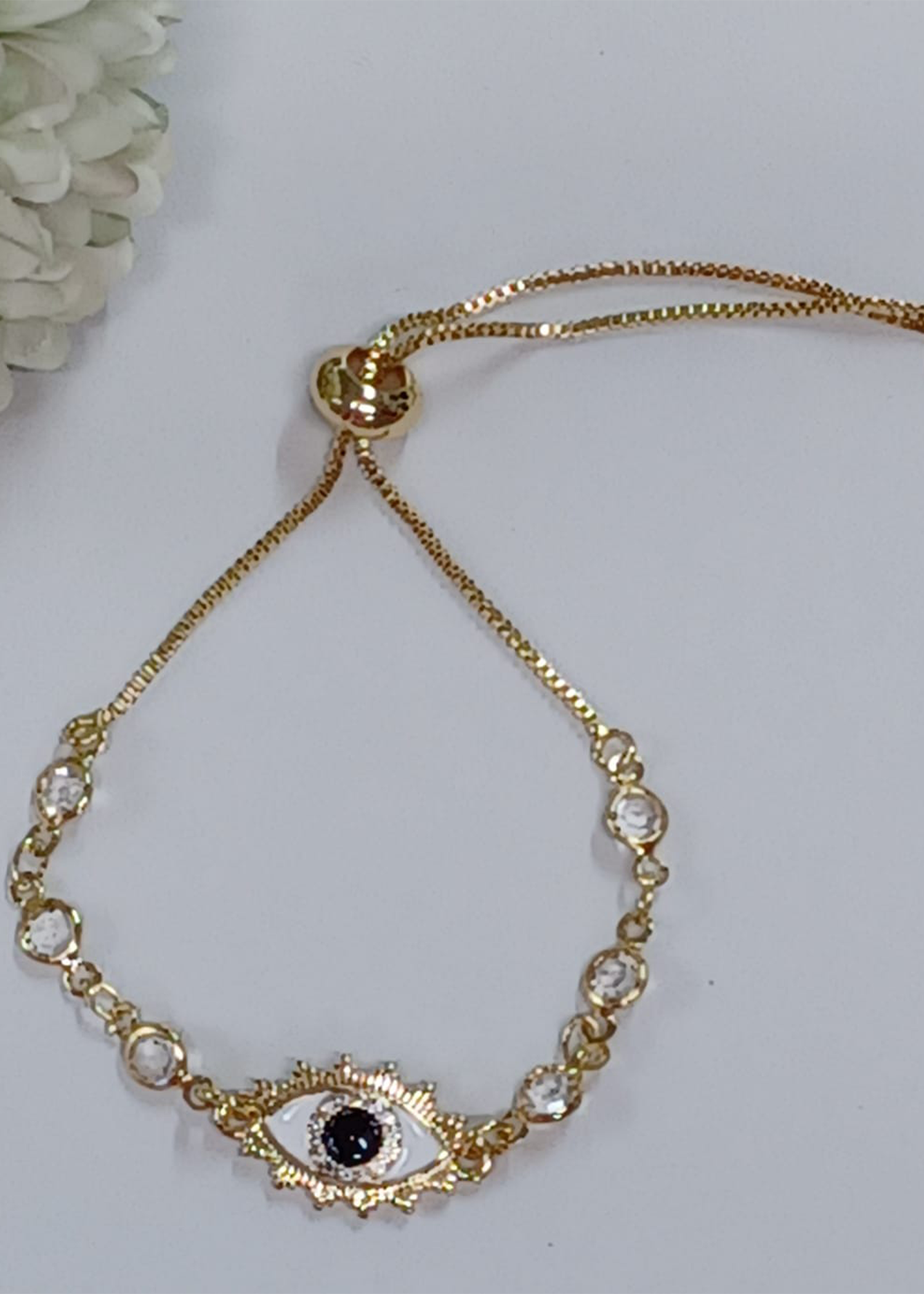 Give your outfit a 'eye-catching' update with this stainless steel bracelet featuring an easy-to-use 'cierre facil'. With timeless style and a sleek shine, this charm-studded accessory will bring a delightful (and unique!) surprise to any ensemble. Slip it on and feel beautiful!