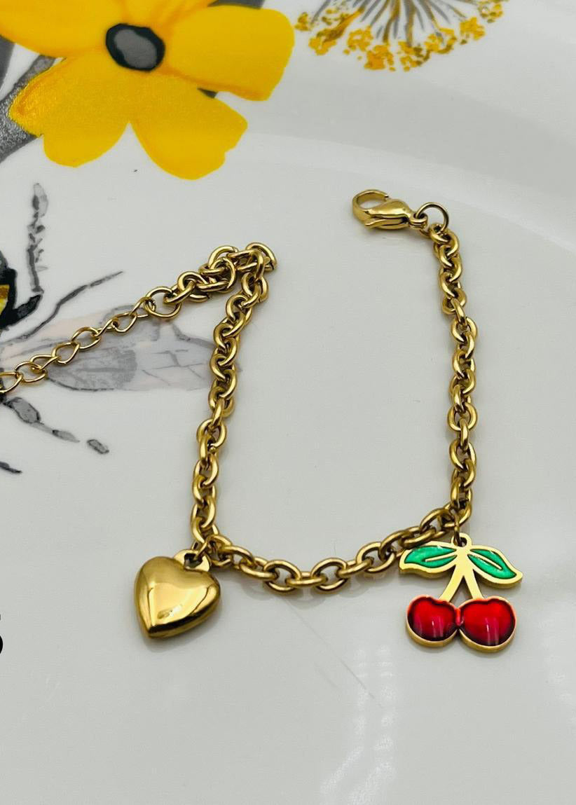 Esta pulsera es perfecta para complementar cualquier atuendo. Con su diseño de fresas y corazones, esta pulsera añade un toque romántico y divertido a tu estilo. Hecha con materiales de alta calidad, es una opción duradera y elegante para cualquier ocasión. ¡Lleva contigo la dulzura de las fresas y el amor de los corazones con esta hermosa pulsera!