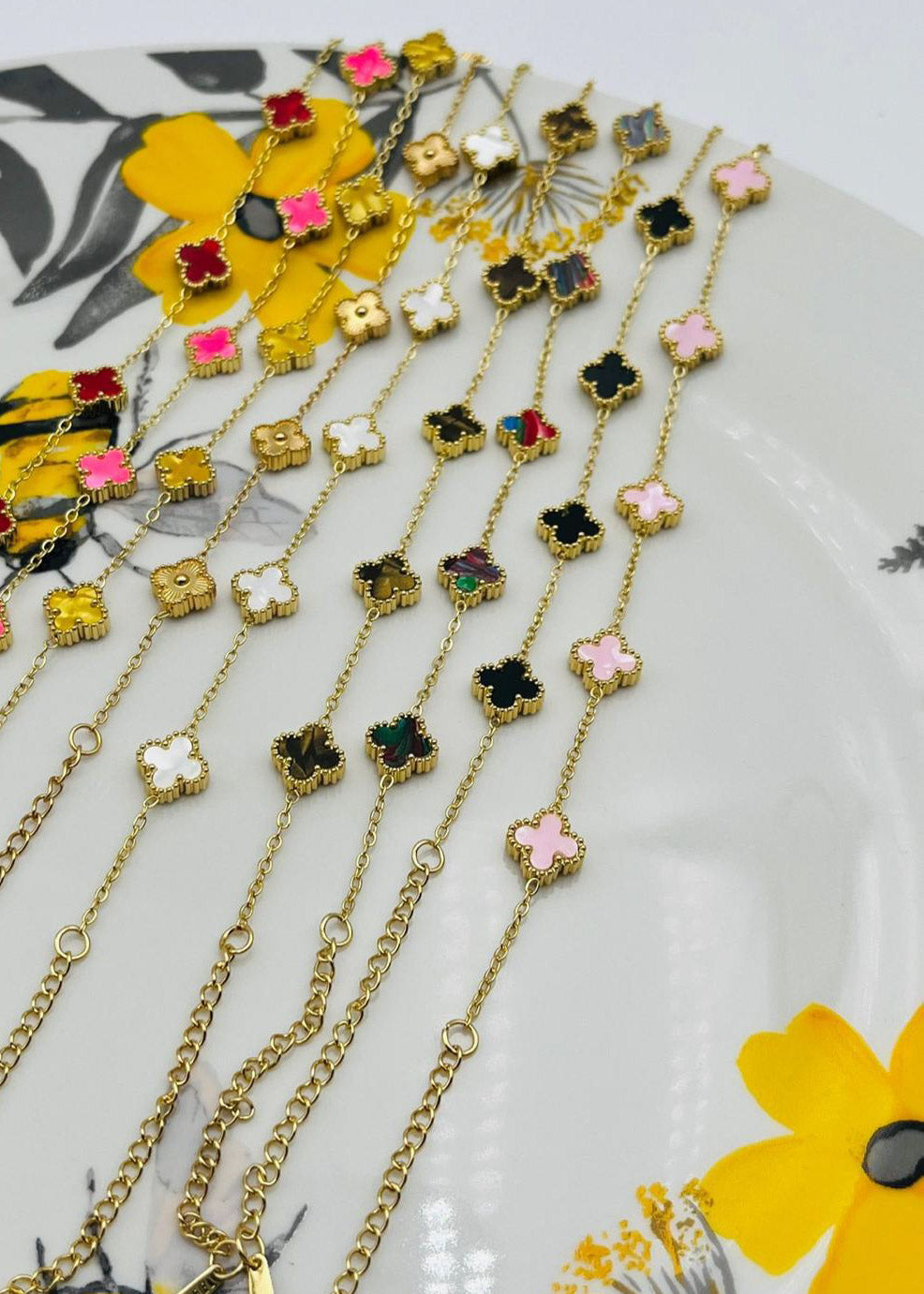 Esta Pulsera Trébol está hecha de durable cadena de acero inoxidable, lo que la hace perfecta para uso diario. Además, su diseño de trébol la hace un accesorio moderno y elegante para cualquier ocasión. ¡Añade un toque de suerte y estilo a tu vida con esta pulsera!