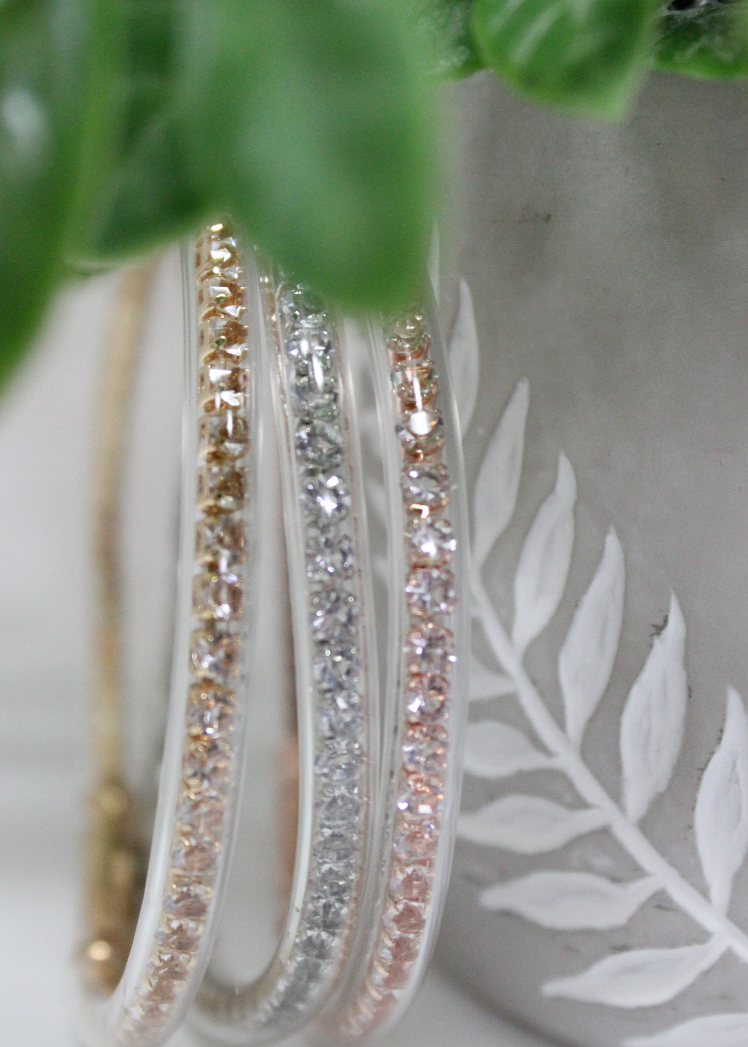 ¡Agrega un toque brillante a tu look con estas pulseras Jelly Clear! Están disponibles en sts de tres tonos, modernos e icónicos. Son perfectas para lucir con cualquier outfit, ¡así que elige el tuyo y empieza a brillar!