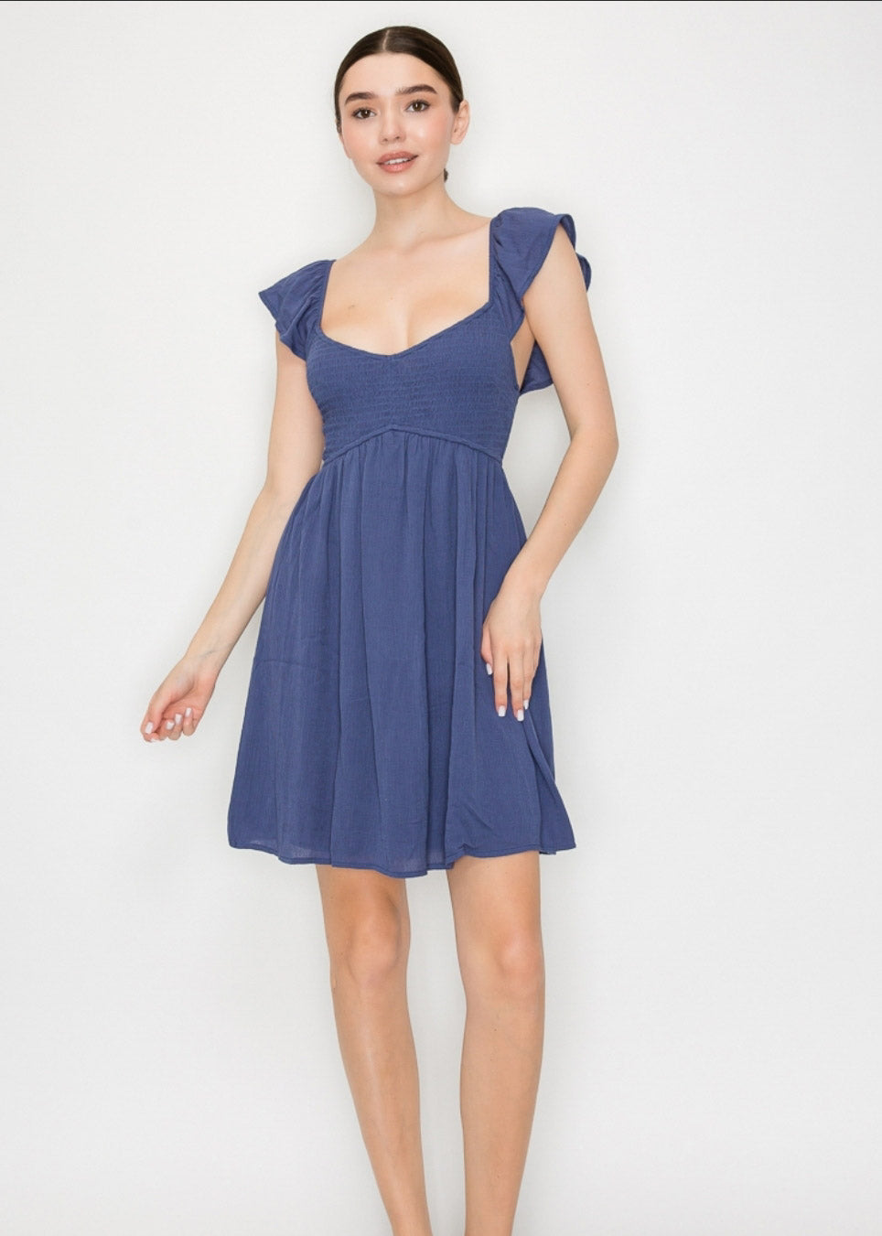 RUFFLE SLV MINI DRESS (WOVEN)