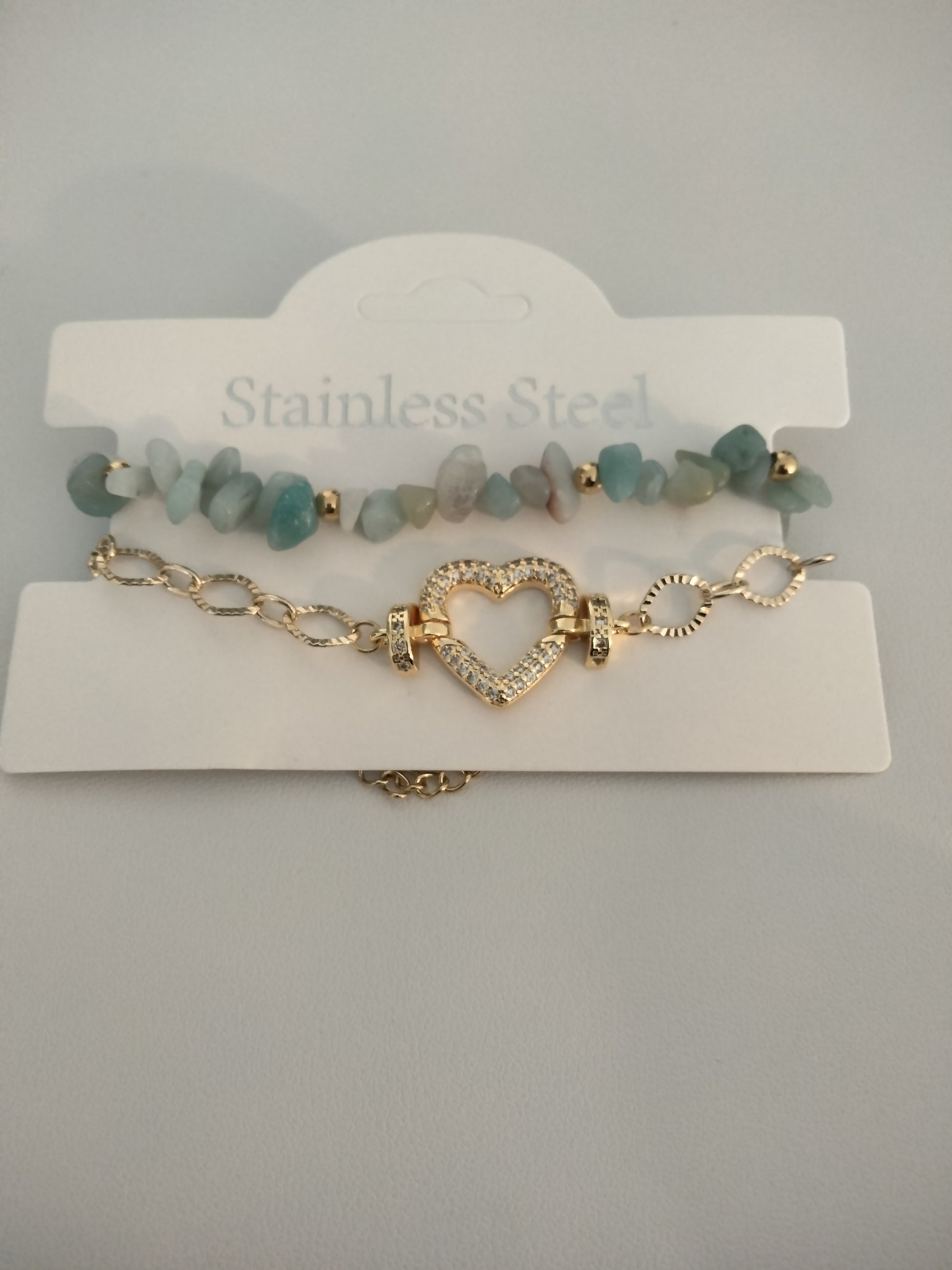 Pulsera en piedras y Stainless Steel y rhinestone y pendant de Corazón