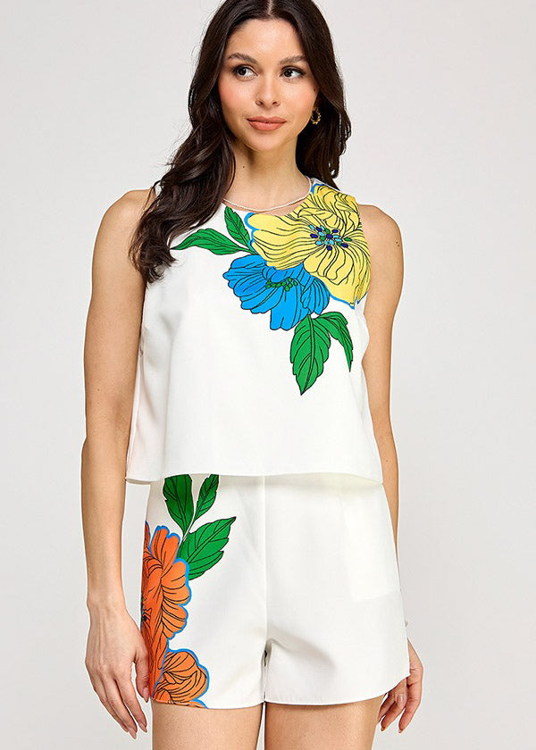 SLVL ROMPER W/ PIECE PRINT DETAIL