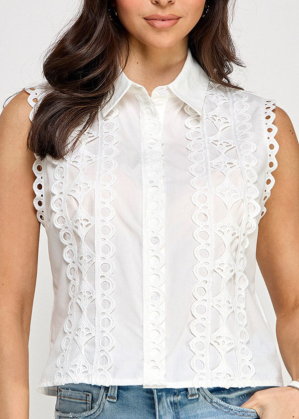 SLVLS LACE TRIM BUTTON DOWN SHIRT TOP | BLANCA