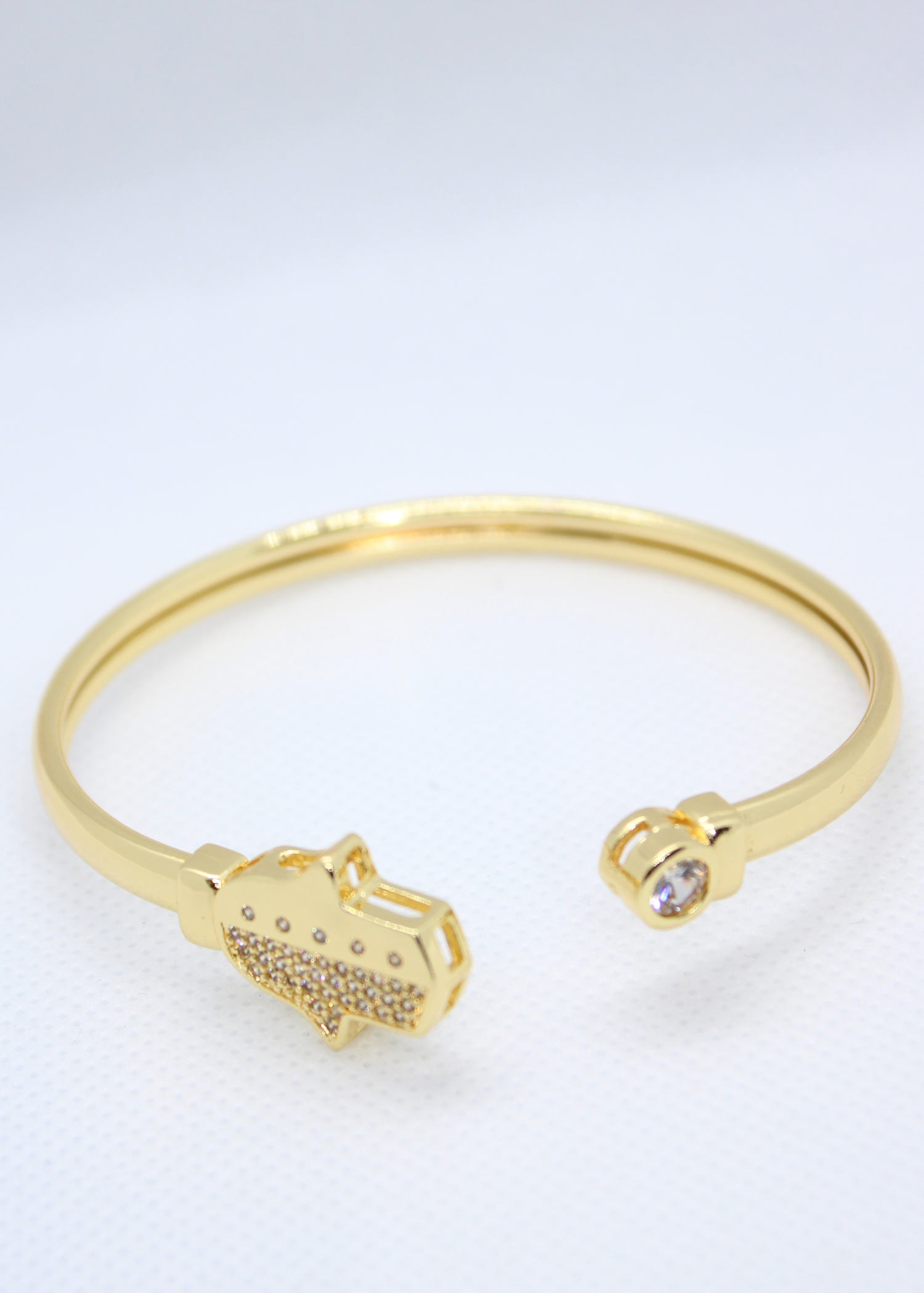 Pulsera en Stainless Steel con rhinestone. La mano en la esquina con la piedra de cristal cortado al otro.