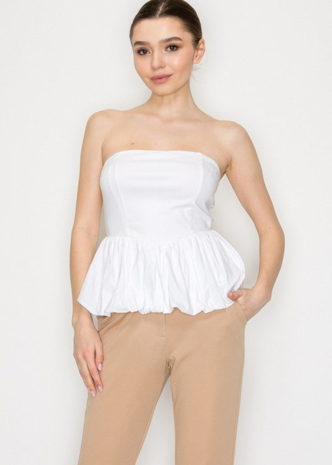 STRAPLESS BALLOON TOP (WOVEN)