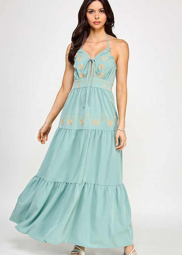 TIERED MAXI DRESS W/ EMBROIDERY DETAIL