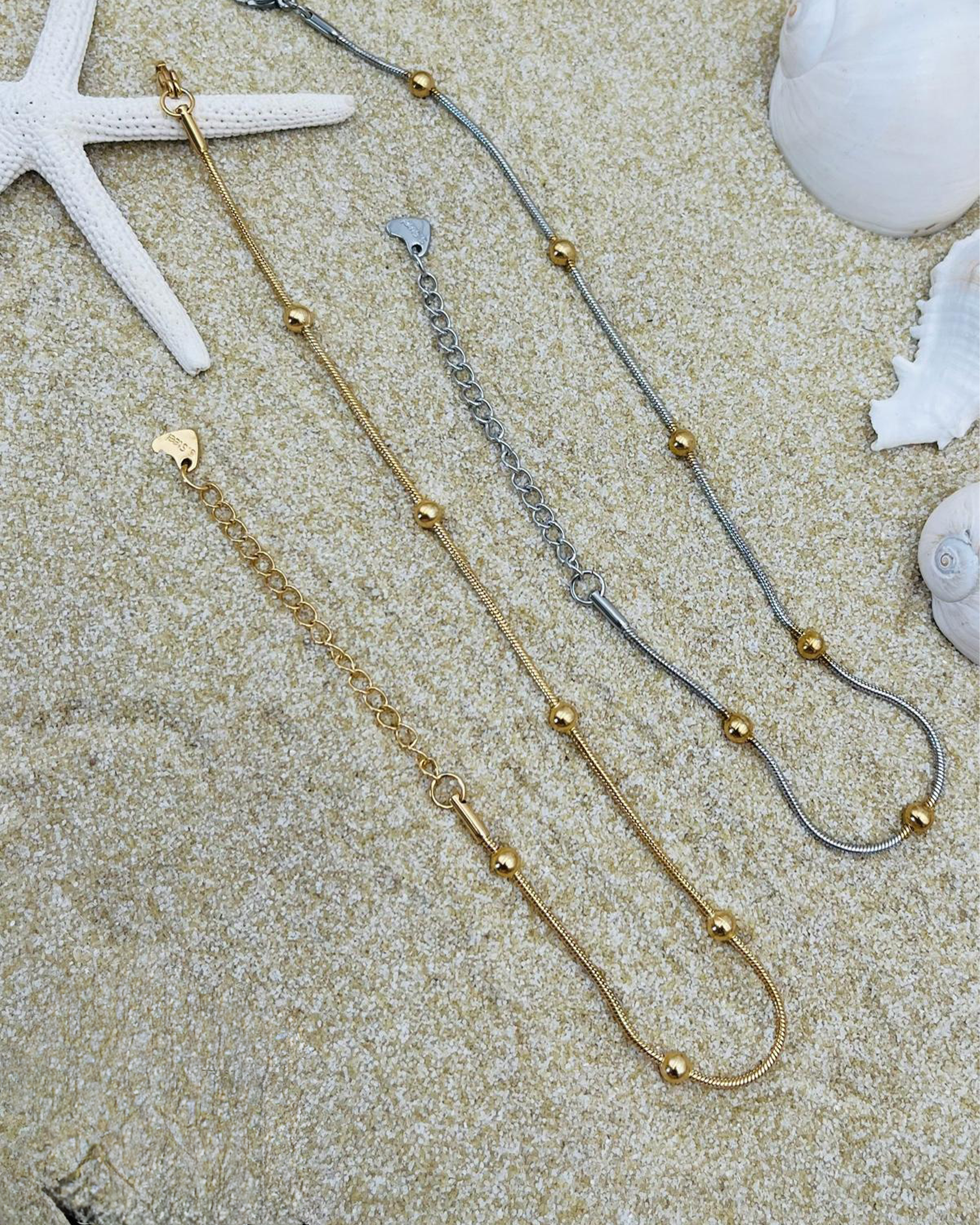 ¡Agrega brillo y estilo a tus tobillos con nuestras tobilleras en acero! Hechas con materiales de alta calidad, son cómodas y duraderas. Perfectas para el verano o para cualquier ocasión especial. ¡Haz que tus pies sean el centro de atención con estas hermosas tobilleras!