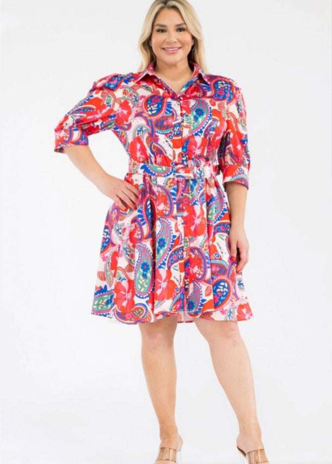 Traje corto multicolor con botones y mangas largas.