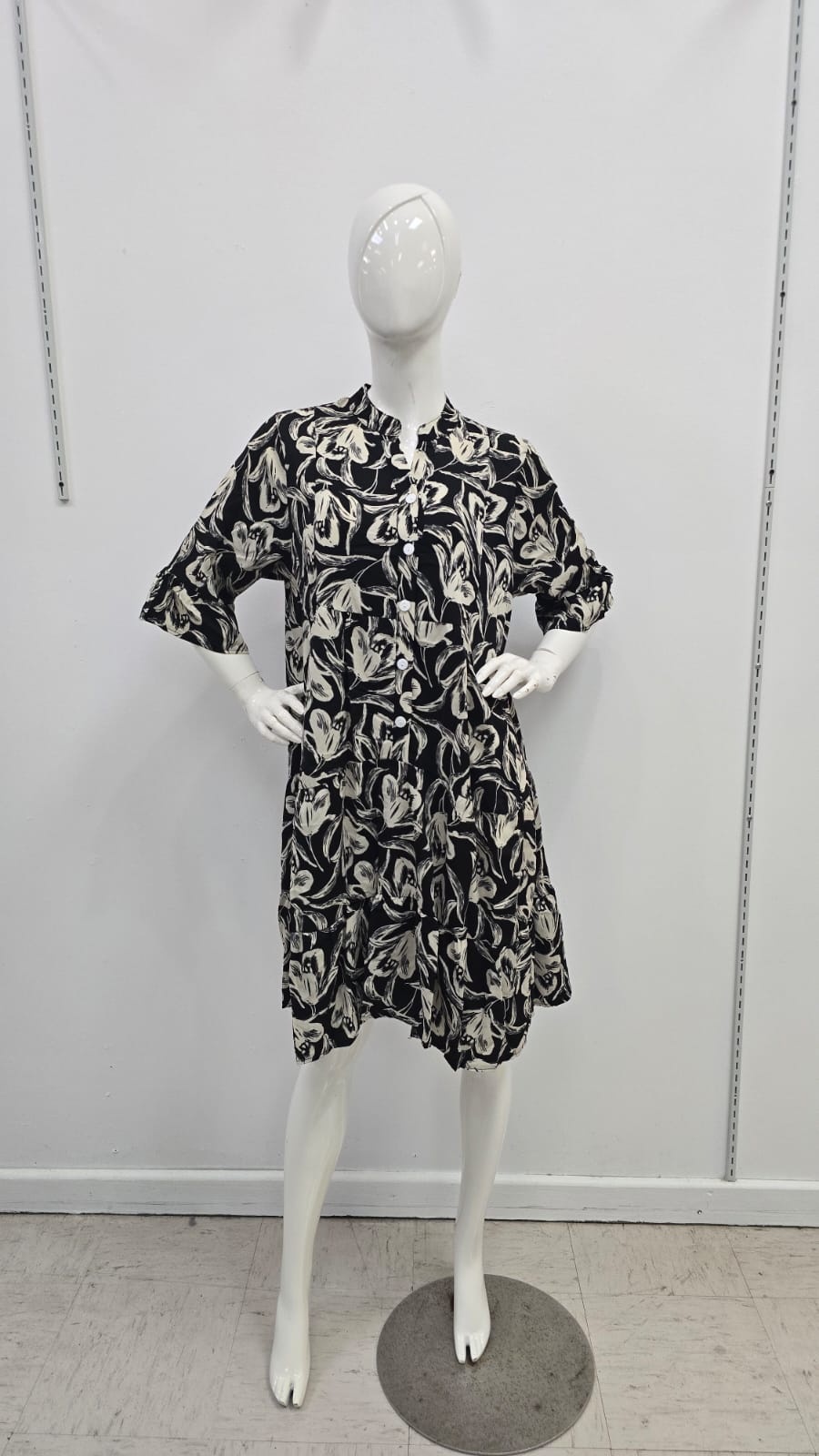 Traje negro de flores crema