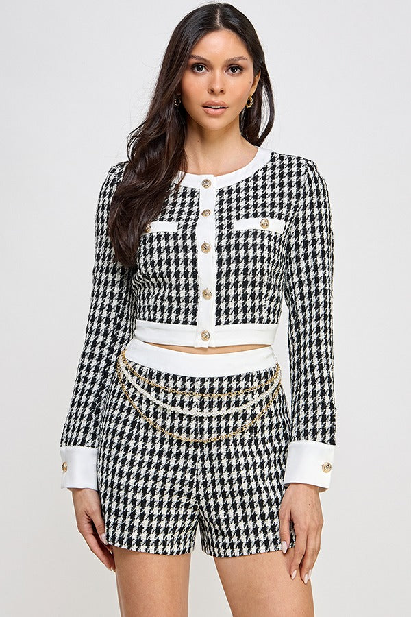 TWEED LSLV JACKET W/CHAIN BELT SHORT SET