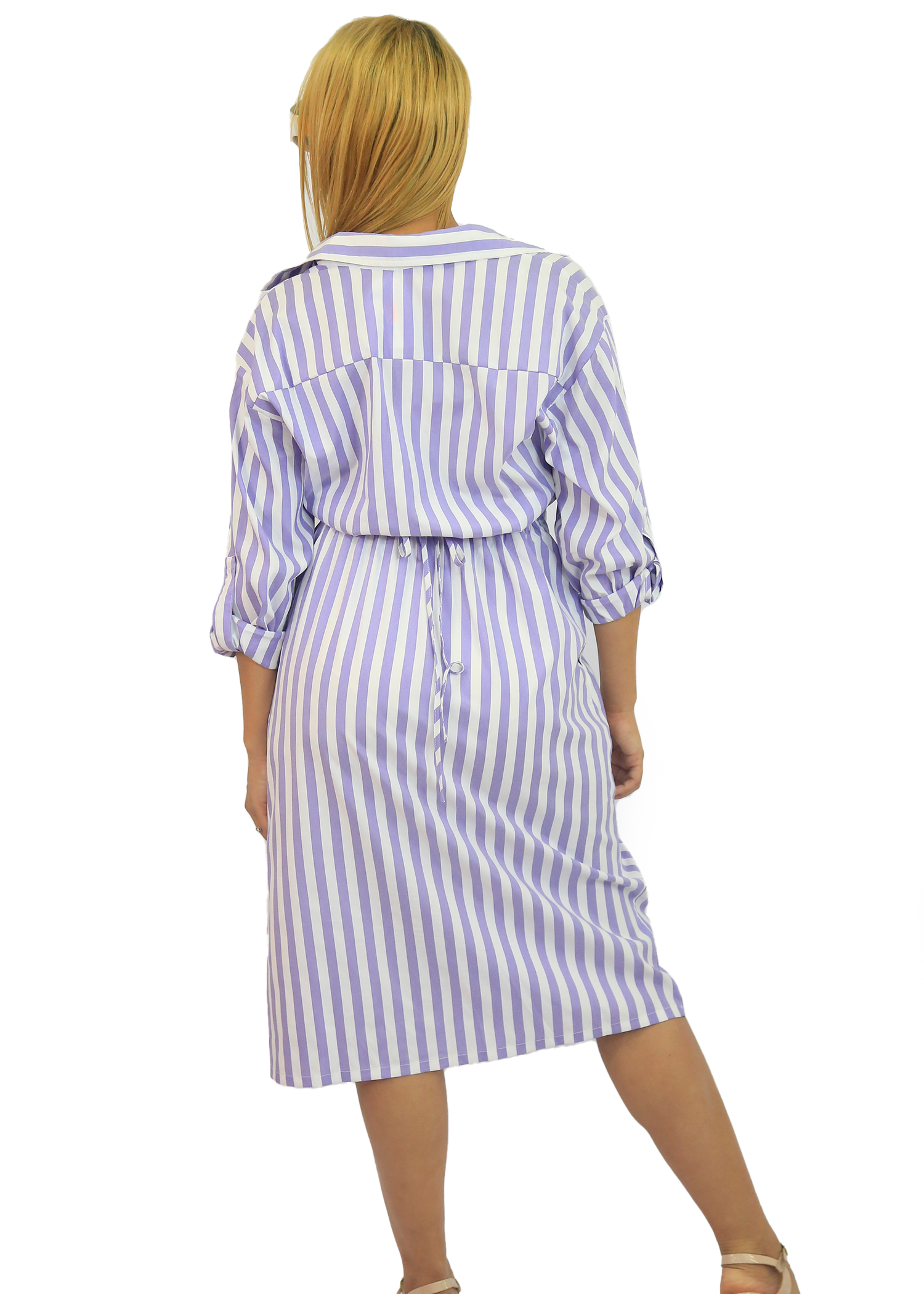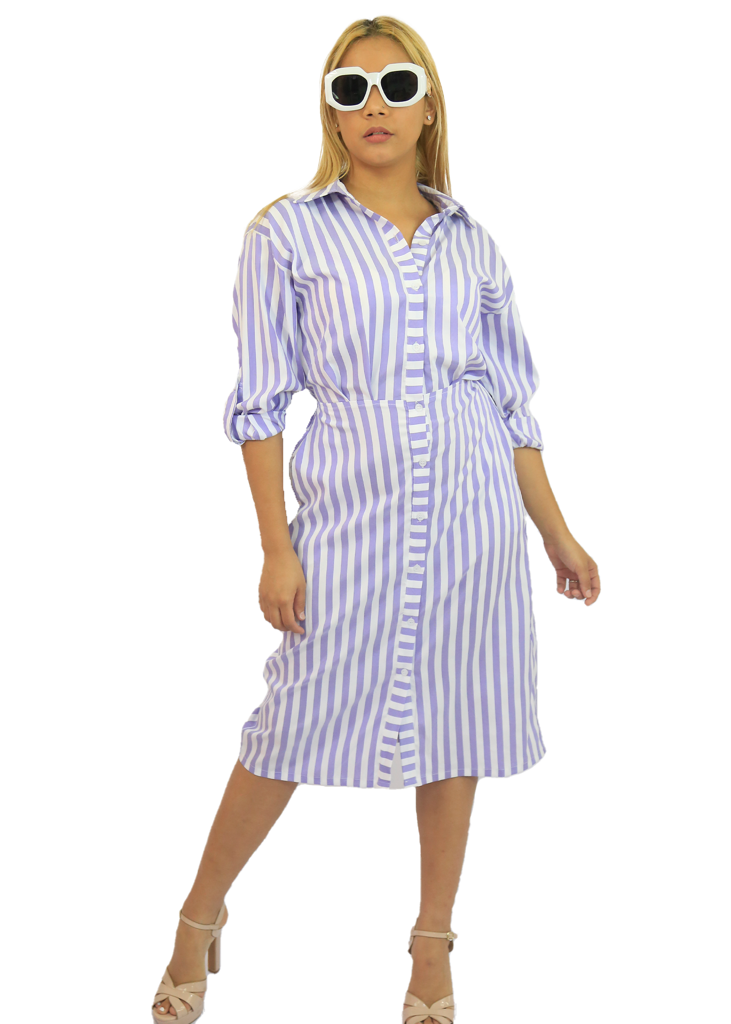 Este vestido maxi, ofrece un look impecable con su tono magenta, diseño abotonado y estampado clásico de rallas hacia abajo. Diseñada para favorecer la figura, esta pieza mejorará cualquier atuendo con un toque atemporal y elegante.